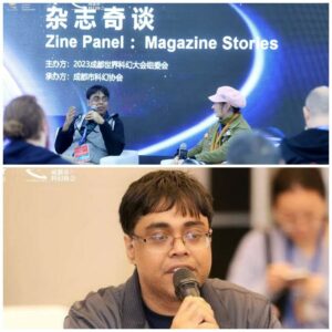 Let us begin with significant news for the global Science Fiction community our editor Dip Ghosh was the only Indian to receive an official invitation from the committee to attend Science Fiction Worldcon in Chengdu in 2023. It is a privilege to have him here.