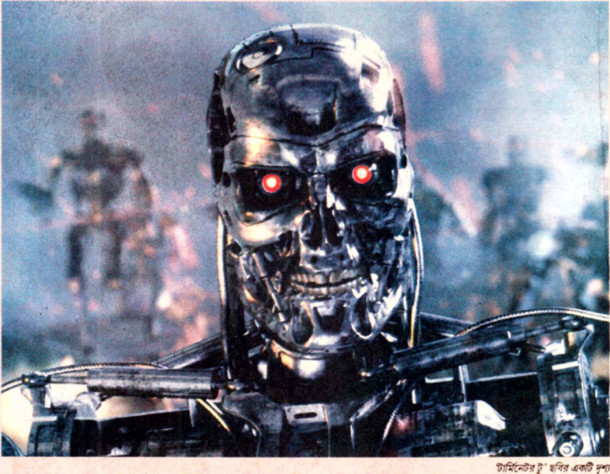 রোবটের ছবি নিয়ে আলোচনা করতে বসে ‘অযান্ত্রিক’-এর প্রসঙ্গ উত্থাপন অনেকের কাছেই বাড়াবাড়ি মনে হতে পারে। তাদের একটু মনে করিয়ে দেওয়া যাক, বহু বছর পরে নির্মিত একটি ইংরেজি ছবির কথা। হলিউডে নির্মিত জেমস ক্যামেরন পরিচালিত ঝাঁ-চকচকে স্পেশাল এফেক্টের সেই সাই ফাই ছবির সঙ্গে কম বাজেটের সাদা-কালো বাংলা ছবি ‘অযান্ত্রিক’ স্বাভাবিকভাবেই কোনও দিক থেকে মেলে না। তবু ছবির শেষ দৃশ্যে কীভাবে যেন ‘অযান্ত্রিক’ এসে পড়ে। ছবিটির নাম ‘টার্মিনেটর টু’। দশ বছরের বালক জন কোনরের মুখোমুখি টার্মিনেটররূপী আর্নল্ড সোয়ারজেনেগার। মিশন শেষ। কোনরকে হত্যার জন্য যে রোবটটিকে পাঠানো হয়েছিল ভবিষ্যৎ থেকে, তাকে ধ্বংস করেছে কোনরের রক্ষাকর্তা হিসেবে আগত আর্নল্ড। সেও রোবট। কোনরের মা সারার গলায় স্বস্তি ঝড়ে পড়ে, ‘ইট’স ফাইনালি ওভার’। কিন্তু আর্নল্ড তাকে চমকে নিয়ে জানায়, ‘নো, দেয়ার ইজ অ্যানাদার চিপ। অ্যান্ড ইট মাস্ট বি ডেস্ট্রয়েড অলসো।’ তার নির্লিপ্ত ঘোষণায় চমকে ওঠে সারা ও জন। জন বাধা দেয়। কাঁদে। কিন্তু সে কান্নায় আর্নল্ড টলে না। নিজেকে ধবংস করে ফেলার আগে অবশ্য সে ক্রন্দনরত জনকে বলে যায়, ‘আই অ্যাম সরি, জন।’ বলে যায়, ‘আই নো নাউ হোয়াই ইউ ক্রাই। বাট ইট ইজ সামথিং আই ক্যান নেভার ডু।’ গোটা ছবি জুড়েই সে কান্নাকে বুঝতে চেয়েছে। প্রথমবার জনকে কাঁদতে দেখে সে অবাক হয়ে জিজ্ঞেস করেছিল, ‘হোয়াটস রং উইথ ইওর আইজ?’ পরে জনকে সে জিজ্ঞাসাও করেছিল, মানুষ কেন কাঁদে? জন তাকে বুঝিয়েছিল। কিন্তু সে বোঝেনি। কেননা যতই সে মানুষের মতো হোক, শেষ পর্যন্ত তো সে যন্ত্রই। তার নিজের ভাষায়, ‘আই অ্যাম এ সাইবারনেটিক অর্গানিজম। লিভিং টিস্যু ওভার এ মেটাল এভোস্কোলিটন।… আই হ্যাভ টু স্টে ফাংশনাল আনটিল মাই মিশন ইজ কমপ্লিট।’ কিন্তু ধীরে ধীরে তার নির্লিপ্তির বদল ঘটে। সে বুঝতে পারে অশ্রুর ভাষা। কিন্তু ওই পর্যন্তই। তার নিজের কান্নার ক্ষমতা নেই। ধীরে ধীরে সে মৃত্যুর নীল জলে ডুবে যায়। আর কান্নায় ভেঙে পড়ে জন। আর এখানেই কীভাবে যেন এসে পড়ে ‘অযান্ত্রিক’-এর ট্যাক্সি ড্রাইভার বিমল। সে কেঁদেছিল তার লজঝড়ে জগদ্দলের জন্য। আর জন কাঁদছে তার রক্ষাকর্তা টারমিনেটরের জন্য। দুটো কান্নাই আসলে একই বিন্দুতে দাঁড়িয়ে। যন্ত্রের জন্য মানুষের অশ্রু।