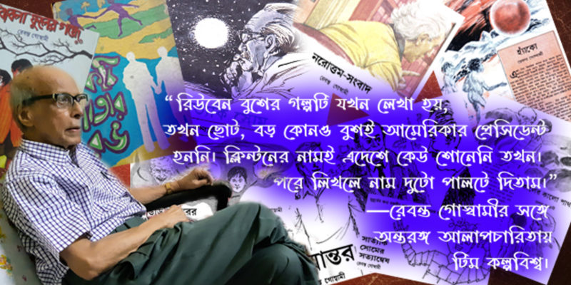 “রিউবেন বুশের গল্পটি যখন লেখা হয়, তখন ছোট, বড় কোনও বুশই আমেরিকার প্রেসিডেন্ট হননি। ক্লিন্টনের নামই এদেশে কেউ শোনেনি তখন। পরে লিখলে নাম দুটো পালটে দিতাম।” রেবন্ত গোস্বামীর সঙ্গে অন্তরঙ্গ আলাপচারিতায় টিম কল্পবিশ্ব।